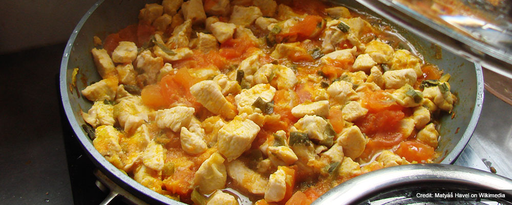 Jasha Maru is a Bhutanese chicken curry made with a mixture of regional spices mostly served with rice. The curry offers a rich taste of the spices and is a common dish enjoyed during lunch.